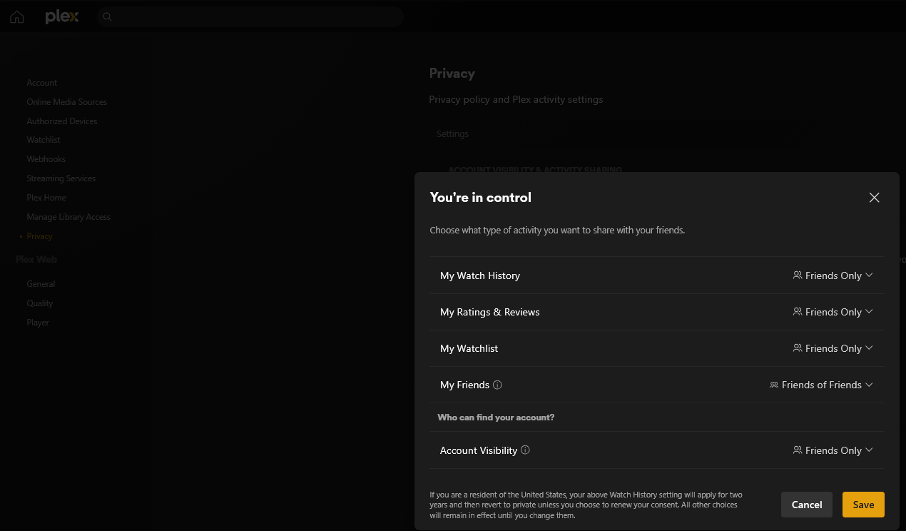 On the left go to Privacy and click on Account visiblity & activity sharing